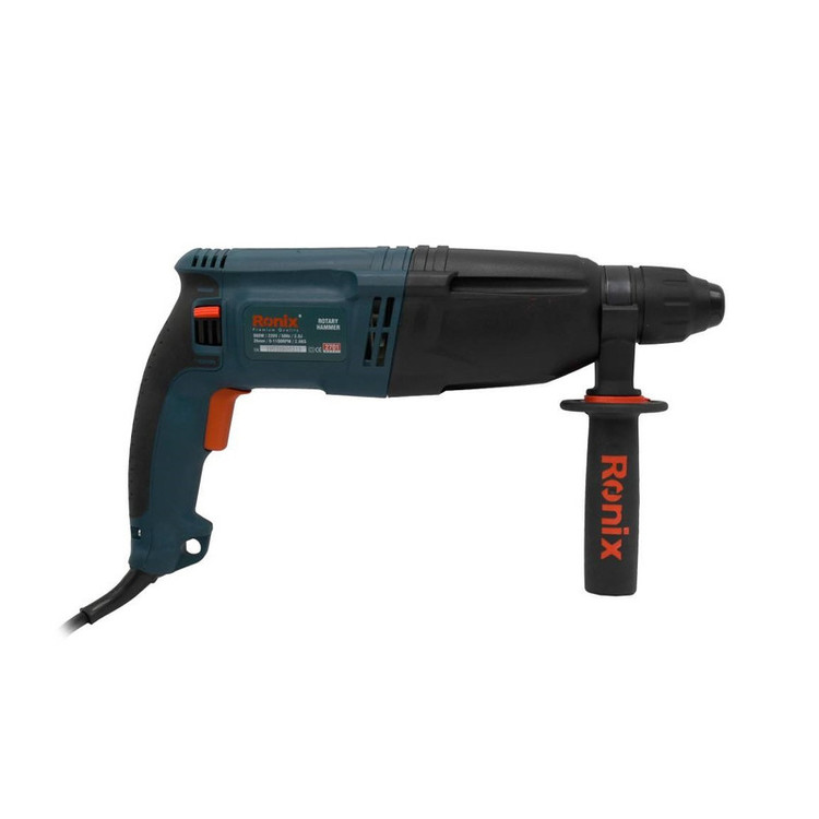 شرکت رونیکس Ronix با ارائه چندین مدل دریل بتن کن در کلاس ها و وزن های مختلف، انتخاب یک دریل بتن کن مناسب را برای مشتریان راحت تر کرده است. دستگاه پیش روی شما که جزو سبک ترین مدل های بتن کن و مناسب کارهای نصب در پروژه های ساختمانی میباشد مدل 2701 رونیکس است و با وزن 2.6 کیلوگرم و ابعاد 38 × 21 × 8 سانتیمتر، یک دریل بتن کن ضربهای با قدرت 800 وات است. سرعت این دریل در حالت بی باری تا 1100 دور بر دقیقه میرسد و دارای قابلیت کنترل سرعت است. این دستگاه هم برای مصارف خانگی و هم برای استفاده در کارگاههای ساختمانی و صنعتی بسیار مناسب است. این دریل توانایی سوراخکاری در چوب، فلز و بتون را دارد و حداکثر قطر سوراخ در این دستگاه در چوب، فلز و مصالح، به ترتیب 30، 13 و 26 میلیمتر است و برای تعویض مته نیازی به آچار ندارد و با ضامن موجود در گلویی دستگاه به سادگی انجام پذیر است. بتن کن 2701 از متریال درجه 1 و تحت استانداردهای روز اروپا توسط شرکت خوش نام رونیکس ساخته و به بازار ارائه گردیده است. از دیگر مزایای این دستگاه کلید چپ گرد راستگرد آن است که در انتهای دستگاه به گونه ای تعبیه گردیده که به سهولت از دو طرف دستگاه قابل تغییر است. .علاوه بر این، برخلاف مدلهای دیگر که کلید چپگرد راستگرد آنها روی شاسی دستگاه نصب شده است از مقاومت بالایی برخوردار است.