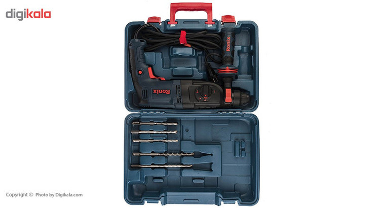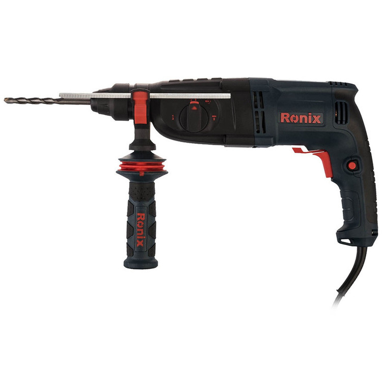 اگر بهدنبال دریل بتن کن هستید، میتوانید محصول شرکت «Ronix» «رونیکس» را انتخاب کنید. این دستگاه تحت عنوان مدل (2727) در بازار وجود دارد. منبع تغذیه این ابزار برق بوده، ولتاژ آن 220 ولت و دارای حالتهای تخریب، سوراخکاری و چکشی-سوراخکاری است. اقلام همراه این دریل بتن کن عبارتند از: کیف، دفترچه راهنما، پنج عدد مته، یک عددمیله عمق سنج و دسته کمکی. وزن این ابزار 3.25 کیلوگرم است و ابعاد آن بهصورت 8 × 21 × 38 سانتیمتر است. سرعت گردش آزاد این محصول 1100 دور بر دقیقه بوده و توان آن 800 وات است. حداکثر قطر سوراخکاری در چوب این دستگاه 30، در فلز 13 و در مصالح 26 میلیمتر است. دریل بتن کن رونیکس مجهز به سیستم گردش چپ گرد و راست گرد بوده و مجهز به قفل سوئیچ است. این مدل محصول بهصورت چندکاره برای راحتی اپراتور طراحی شده و دارای قدرت بالا برای استفاده در کارهای سنگین است.
