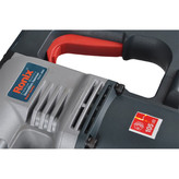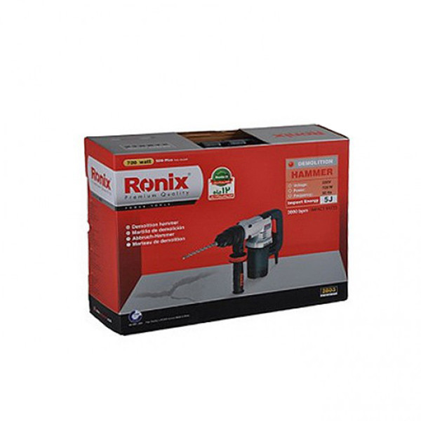 این دستگاه تحت لیسانس GS, EMC و CE میباشد که دارای کیف BMC مقاوم در برابر ضربه و مجهز به دسته جانبی گردان آنتی شوک میباشد همچنین برای سهولت کار دارای کیف برزنتی حاوی قلم های تخریب کاربردی که مجهز به کلید ضد غبار تحت استاندارد CE و TUV و مجهز به سیستم ضد لرزش داخلی منحصر به فرد جهت جلوگیری از انتقال لرزش حین کار به کاربر در مصارف طولانی مدت برای کاربر به ارمغان دارد این دستگاه همچنین مجهز به پوشش ضد غبار تحتانی جهت محافظت از موتور و قسمت الکتریکی حین کار پرفشار و دراز مدت و عمر طولانی تر میباشد این دستگاه بسیار سبک و کم حجم جهت تخریب کاری سریع و موثر با وزن فوق سبک میباشد و مناسب جهت مصارف تخریب در 3 جهت کف، سقف و دیوار و بزرگترین مذیت این دستگاه مجهز بودن به موتور پرقدرت و گیربکس صنعتی ساخته شده از آلیاژ منیزیوم جهت بالا بردن اثربخشی عملیات تخریب و عمر کارکرد طولانی میباشد استفاده از سیستم قفل کن پیشرفته قلم گیر 4 شیار SDS-PLUS جهت بالا بردن اثربخشی تخریب در حالت های متنوع تخریب کاری با قلم تخت استفاده از بهترین آلیاژ مواد اولیه در قسمت مکانیکی شامل سنبه های میانی، ضربه زن، شاتون و سیلندر جهت عملکرد بهینه دستگاه حین تخریب کاری و جلوگیری از استهلاک زودرس در شرایط سخت و پرفشار کاری است.