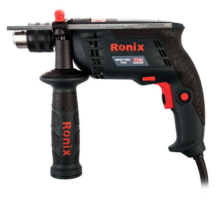 دریل ابزاری شناخته شده در صنعت برای سوراخکاری سطوح مختلف است. دریل چکشی (Ronix) «رونیکس» تحت عنوان مدل (2240) در بازار موجود است. از این ابزار میتوان برای سطوح چوبی، فلزی و بتنی استفاده کرد. حداکثر قطر سوراخکاری این دریل در چوب 20، در فلز 13 در مصالح نیز 13 میلیمتر است. این ابزار مناسب برای سوراخکاری معمولی و سوراخکاری ضربهای است و دارای دستهی کمکی قابل تنظیم در دو جهت برای تسلط بیشتر کاربر است. وزن این چکش 1.8 کیلوگرم، توان آن 750 وات و ولتاژ ورودی آن 220 ولت است. سرعت گردش آزاد این محصول 2800 دور بر دقیقه است، سیستم گردش چپ گرد و راست گرد دارد و دارای قفل سوییچ است. سایز سه نظام این دریل بهصورت آچارخور 13 میلیمتر است. این دریل دارای قابلیت کنترل سرعت است و اقلام همراه آن عبارتند از: دسته کمکی، دفترچه راهنما، میله تنظیم عمق و آچار مخصوص باز و بسته کردن سه نظام.