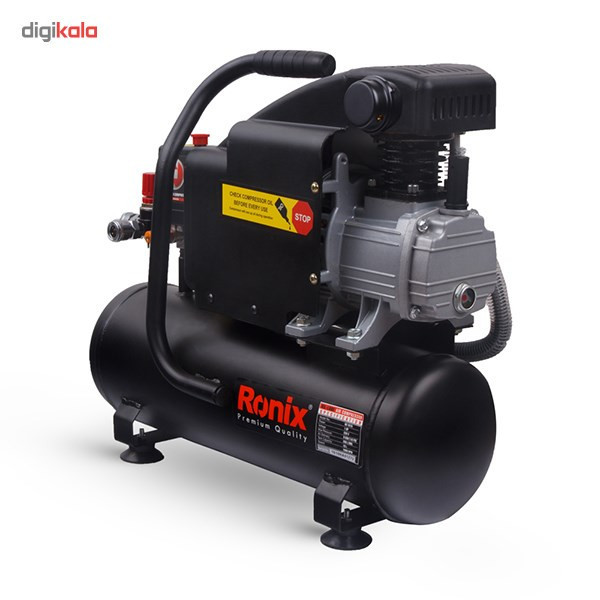بهرهگیری از تجهیزاتی مانند پمپ و کمپرسور که موجب حرکت سیالات میشوند کمک شایانی به بشر کرده است. این تجهیزات، نیروی مورد نیاز برای مکش یا رانش سیال را ایجاد میکنند و موجب حرکت آن با سرعت و فشاری مشخص میشوند. بیشترین میزان استفاده از کمپرسورهای هوا در صنعت است اما این تجهیزات با قدرتهای کمتر نیز به منظور انجام کارهای نیمه صنعتی مورد استفاده قرار میگیرند. محصولی که در تصویر مشاهده میکنید کمپرسور مدل «RC-1010» است که توسط شرکت «رونیکس» (Ronix) تولید میشود و توانی برابر 746 وات دارد و برای مصارف صنعتی و غیر صنعتی مناسب است. منبع تغدیهی این کمپرسور برق 220 ولت شهری بوده و قادر است جریانی با حداکثر فشار 116 پی اس آی ایجاد کند. این کمپرسور ظرفیتی برابر 10 لیتر دارد و دبی آن 200 لیتر بر دقیقه است. این محصول دارای فشارسنج بوده و میزان فشار را به خوبی نمایش میدهد. یکی از نقاط قوت کمپرسور در قسمت خروجی آن است و از دو نازل خروجی بهره میگیرد. در این صورت میتوانید دو جریان خروجی هوایی داشته و با کمک شیری که در بالای آن قرار دارد دبی خروجی را کنترل کنید. در صورتی که فشار هوای داخل مخزن بیش از حد شود، سوپاپ اطمینانی وجود دارد که با خروج هوا میزان فشار را سریعا کاهش میدهد. این محصول دارای کلید استارتی با تکنولوژی LEFCO بوده و به صورت چرخشی عمل میکند. به همراه این کمپرسور یک روغن روانکاری نیز عرضه میشود.