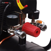 کمپرسورها نیز مانند پمپها به منظور ایجاد نیرویی مناسب برای حرکت سیالات استفاده میشوند. بیشترین میزان استفاده از کمپرسورهای هوا در صنعت است اما این تجهیزات با قدرتهای کمتر نیز به منظور انجام کارهای نیمه صنعتی مورد استفاده قرار میگیرند. محصولی که در تصویر مشاهده میکنید کمپرسور مدل «RC-2510» است که توسط شرکت «رونیکس» (Ronix) تولید میشود و توانی برابر 1492 وات دارد و برای مصارف صنعتی و غیر صنعتی مناسب است. منبع تغدیهی این کمپرسور برق 220 ولت شهری بوده و قادر است جریانی با حداکثر فشار 116 پی اس آی ایجاد کند. این کمپرسور ظرفیتی برابر 25 لیتر دارد و دبی آن 200 لیتر بر دقیقه است. این محصول دارای فشارسنج بوده و میزان فشار را به خوبی نمایش میدهد. یکی از نقاط قوت کمپرسور در قسمت خروجی آن است و از دو نازل خروجی بهره میگیرد. در این صورت میتوانید دو جریان خروجی هوایی داشته و با کمک شیری که در بالای آن قرار دارد دبی خروجی را کنترل کنید. در صورتی که فشار هوای داخل مخزن بیش از حد شود، سوپاپ اطمینانی وجود دارد که با خروج هوا میزان فشار را سریعا کاهش میدهد. این محصول دارای کلید استارتی با تکنولوژی LEFCO بوده و به صورت چرخشی عمل میکند. این کمپرسور حجمی بالا دارد و برای جابهجایی راحتتر آن میتوانید از چرخ و دستگیرهی تعبیه شده برای آن استفاده کنید. به همراه این کمپرسور یک روغن روانکاری نیز عرضه میشود.