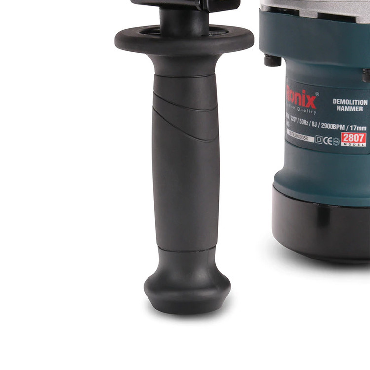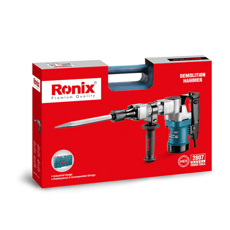 افرادی که بهدنبال چکش تخریب هستند، میتوانند محصول شرکت «Ronix» «رونیکس» را انتخاب کنند. این چکش تخریب تحت عنوان مدل (2807) به بازار عرضه شده است. اقلام همراه این دریل بتن کن عبارتند از: دفترچه راهنما، دو قلم تخریب، گریس، دسته جانبی با قابلیت چرخش و کنترل بهتر، و یک عدد آچار مخصوص برای باز و بسته کردن سه نظام. منبع تغذیه این ابزار برق بوده و ولتاژ آن 220 ولت است. وزن این ابزار 5.5 کیلوگرم و مجهز به کابل برق 2 متری است. سرعت گردش آزاد این محصول 2900 دور بر دقیقه بوده و توان آن 900 وات است. این دستگاه قابلیت وارد آوردن 8 ژول انرژی در هر ضربه را دارد. قدرت این دستگاه بسیار زیاد است و دارای عملکردی بالا به هنگام کار است. این محصول دارای وزن سبک برای حداکثر کنترل بوده و میتواند انتخابی مناسب برای شما باشد.