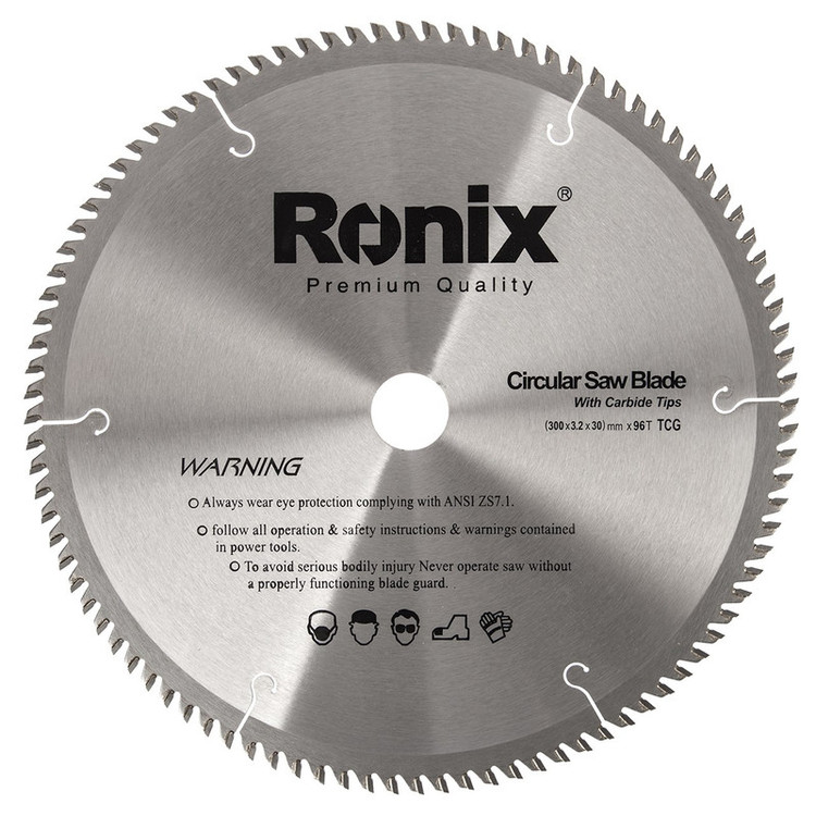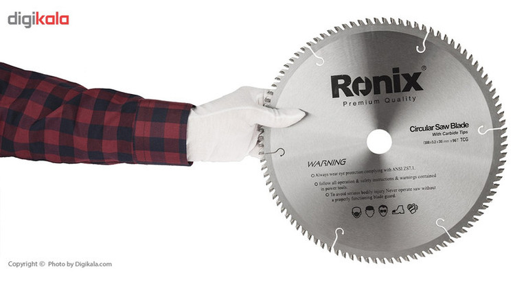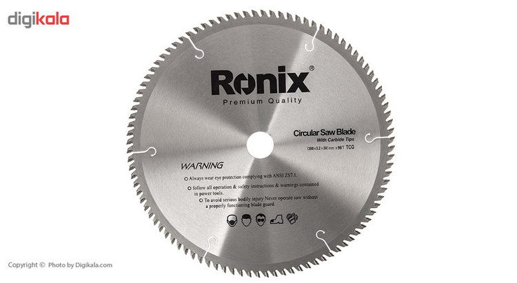 تیغه اره فوق یکی از محصولات تولیدی شرکت «رونیکس» (Ronix) است. این تیغه الماسه مدل «RH-5116» نام دارد و باتوجه به طراحی که دارد برای برش چوب، نئوپان و MDF مناسب است. شرکت رونیکس این محصول را به دندانههای تنگستن کارباید مجهز کرده است. این دندانهها طول عمر بالایی دارند و بهراحتی کند نمیشوند. این تیغه اره الماسه توانسته است استاندارد ANSI ZS 7.1 را اخذ نماید. . سایز این تیغه اره 30 × 3.2 × 300 میلیمتر بوده و برای ارههای دیسکی مناسب است. شرکت رونیکس سالهاست که در زمینهی تولید انواع ابزارهای دستی و برقی فعالیت میکند و در این زمینه موفق بوده است.