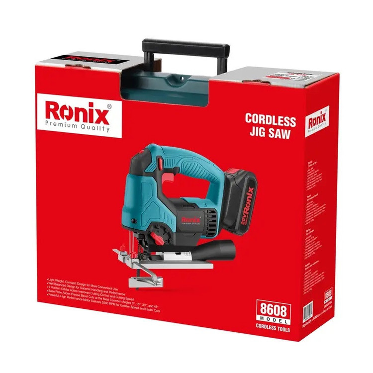 خط کش گونیا، کیسه جمع آوری براده، تیغه ی برش چوب ، تیغه ی برش فلزات، دو عدد باتری 2 آمپرساعت، یک عدد شارژر2 آمپرساعت