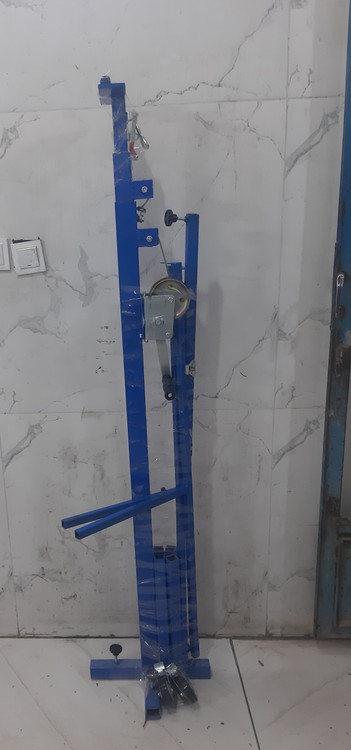 جک بالابر پانل کناف سقفی یکی از ابزار پر کاربرد مخصوص کناف کاران می باشد. این وسیله برای بالا بردن پانل ها جهت نصب و پیچ کردن آن ها به سازه های سقفی استفاده می شود.ویژگی این جک قابلیت چرخش به صورت عمودی و افقی میباشد به صورتی که جهت سهولت بتوان پانل را در ارتفاع پایین تر روی آن گذاشت و سپس آن را به حالت افقی برگرداند. همچنین کمک می کند پیچ کردن پانل ها در تراز دلخواه توسط یک نفر به راحتی انجام شود. این محصول دارای بدنه فولادی بسیار مقاوم و مستحکم با کاربرد بسیار آسان میباشد. همچنین کمترین ارتفاع آن 160 سانتی متر و بیشترین ارتفاعی که میتواند پانل را بالا مستقر کند نیز 330 سانتی متر می باشد. همچنین از این جک به عنوان جک بالابر MDF ، چوب و کابینت استفاده میگردد.
